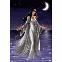 Símbolo: Abebê (espelho enfeitado), lua minguante, peixes e conchas